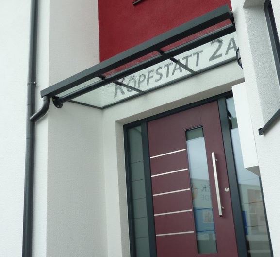 Wir können Haustürüberdachungen aus Metall oder in Kombination mit Glas, Blech oder Kunststoff anbieten. Passend dazu bieten wir Windfangelemete an. Die Überdachungen können freitragend oder geständert angeboten werden.
